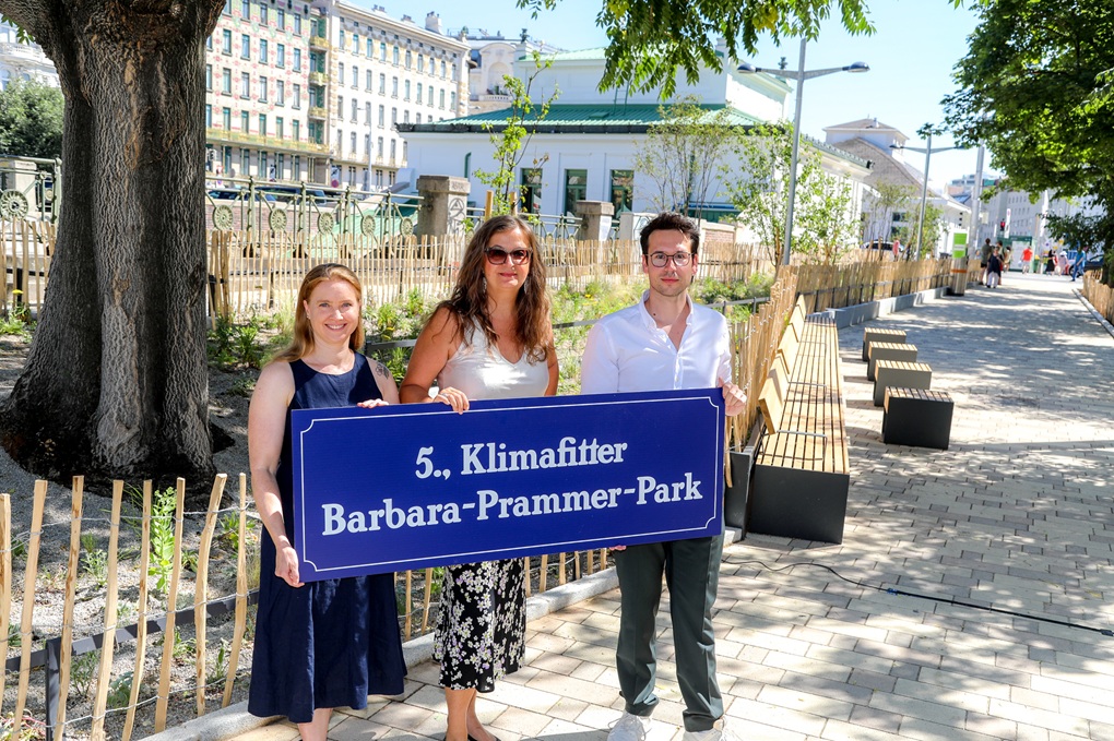 Novi park u Margaretenu nazvan je po Barbari Prammer – omiljenoj socijaldemokratskoj političarki koja je 2006. godine postala prva predsjednica Nacionalnog vijeća austrijskog parlamenta. Brabara Prammer živjela je u nedalekoj ulici Rüdigergasse, samo pet minuta hoda od novog parka.