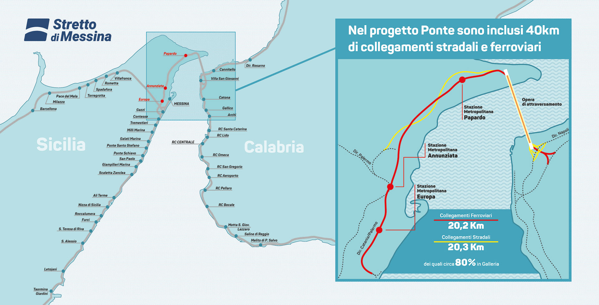 Most preko Mesinskog tjesnaca predstavlja najbolji odgovor na potražnju za učinkovitijim i modernijim prometnim sustavom koji talijanski jug povezuje s ostatkom zemlje, a njegovom izgradnjom talijanska i europska željeznička mreža proširit će do Kalabrije i Sicilije.