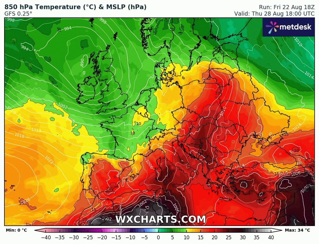 Kad se Erin slomi i sredinom tjedna uđe dublje u Europu, očekuje se nestabilno vrijeme i za ostatak kontinenta uz nevrijeme, pljuskove i pad temperature. Naime, ovakvi vremenski uvjeti u kombinaciji s nestabilnom zračnom masom tropskog podrijetla i rekordno toplim Sredozemnim morem stvaraju uvjete za višednevno jako nevrijeme – posebice u području od od Francuske prema sjevernom Mediteranu i Alpama, i to od srijede navečer pa sve do kraja tjedna, zaključuje Severe Weather Europe.