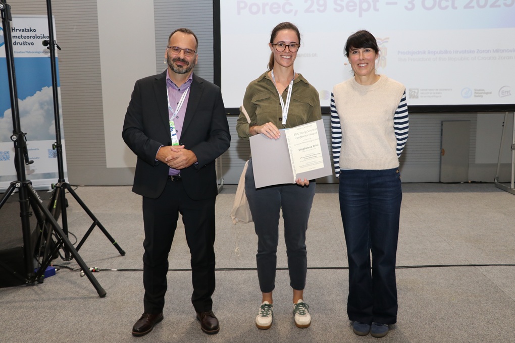 - dr. sc. Kristian Horvath i prof. dr. sc. Ivana Stiperski s nagrađenom mladom znanstvenicom Magdalenom Fritz iz Austrije © DHMZ