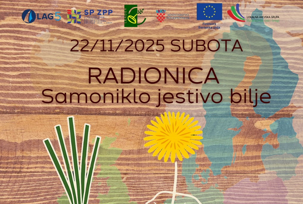 U sklopu projekta „Food Without Borders: Meeting each other through flavours”, Lokalna akcijska grupa LAG 5 organizira radionicu prepoznavanja i pripreme samoniklog jestivog bilja. Radionica će se održati u subotu, 22. studenog 2025. godine, u Vinariji Bartulović u Prizdrini s početkom u 10:00 sati.
