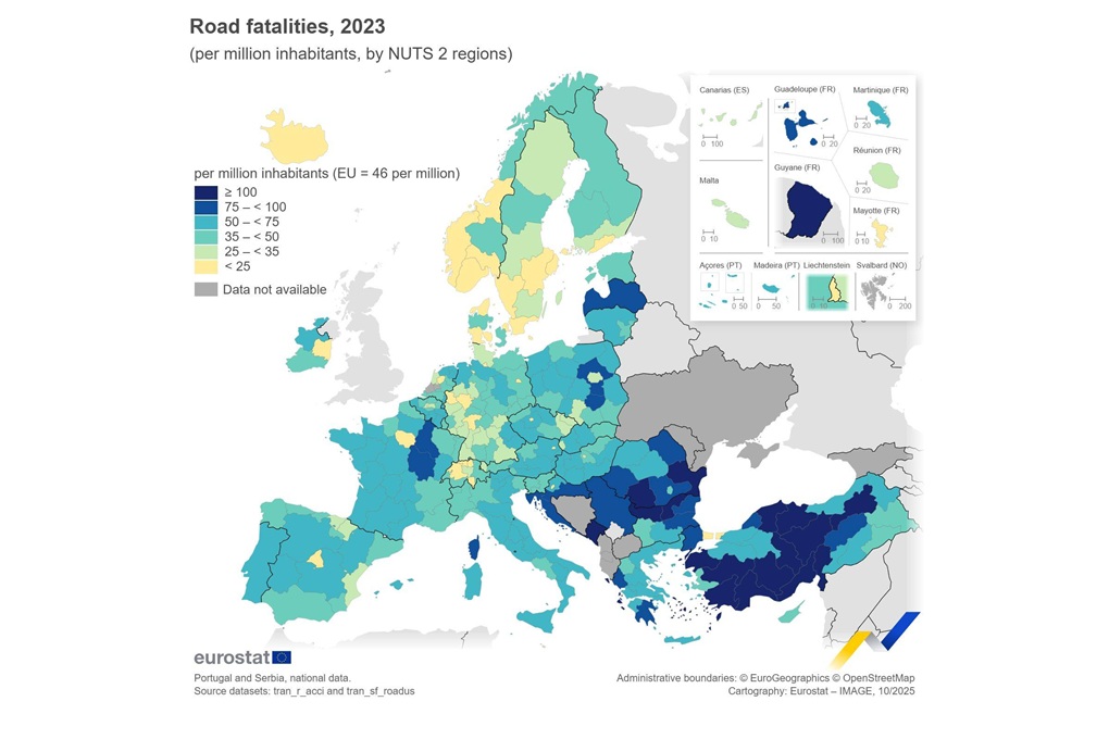 Povodom Svjetskog dana sjećanja na žrtve prometnih nesreća, koji se u čast svim poginulima i ozlijeđenima u prometnim nesrećama obilježava 16. studenog s ciljem promicanja poboljšanja sigurnosti u prometu, Eurostat je objavio podatke o smrtnim slučajevima u prometu za 2023. godinu.
