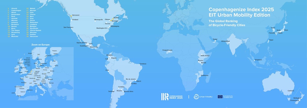 Copenhagenize Index 2025 | Objavljena najopsežnija rang-lista stotinu svjetskih gradova kojom se ocjenjuje njihova prilagođenost biciklističkom prometu i predanost razvoju biciklističke infrastrukture