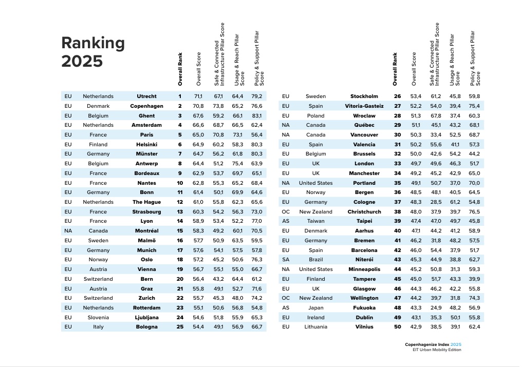 - Copenhagenize Index 2025: poredak od prvog do 50. mjesta
