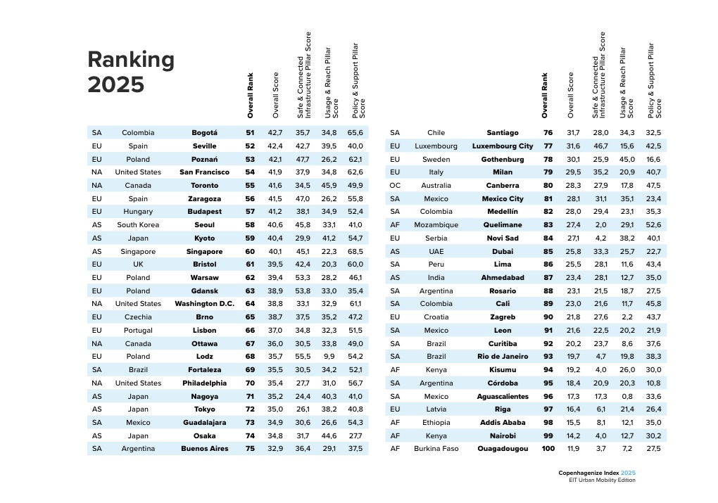 - Copenhagenize Index 2025: poredak od 50. do 100. mjesta