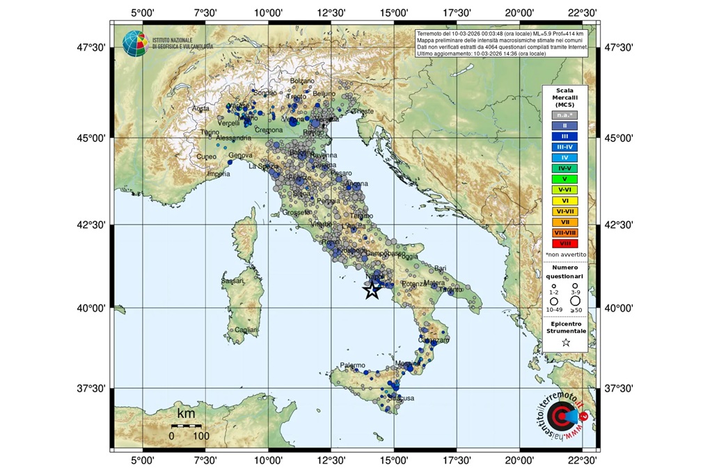 „S obzirom na to da je hipocentar bio na velikoj dubini, uz obalu Kampanije zabilježen je manji lokalni intenzitet potresa jer seizmički valovi moraju prijeći veću udaljenost da bi stigli do površine, pri čemu znatno slabe. Kako se energija raspodjeljuje na mnogo širem području, potres se osjetio na udaljenostima od nekoliko stotina kilometara. Duboki potresi imaju manju razornu snagu i rijetko uzrokuju štete jer izgube velik dio energije prije nego što dosegnu površinu“, zaključuju u Nacionalnom institutu za geofiziku i vulkanologiju (INGV).