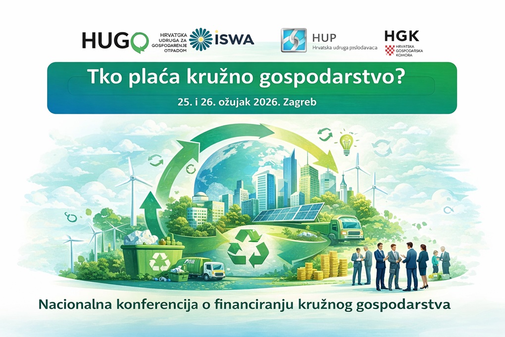 Hrvatska udruga za gospodarenje otpadom (HUGO), članica ISWA-e (International Solid Waste Association), organizira nacionalnu konferenciju o troškovima, izazovima i budućnosti sustava gospodarenja otpadom. Konferencija pod nazivom „Tko plaća kružno gospodarstvo?“ održat će se u srijedu i četvrtak, 25. i 26. ožujka 2026., u prostoru WESPA Spaces (Green Gold) u Zagrebu te okupiti vodeće stručnjake, predstavnike institucija, gospodarstva i javnog sektora.
