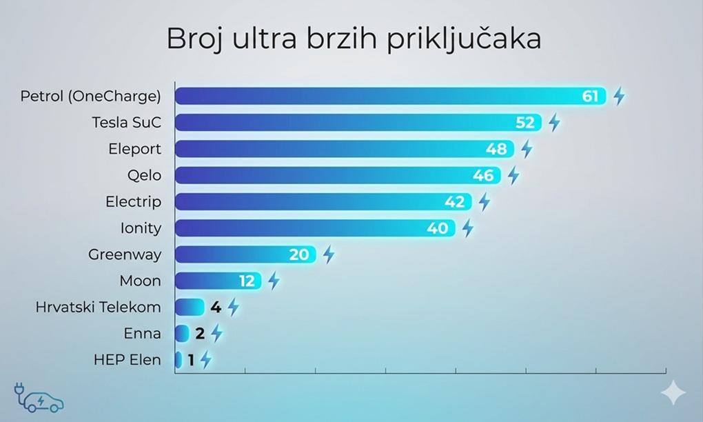 Hrvatska udruga eMobilnost odlučila je analizirati i prebrojiti punionice koje se mogu karakterizirati kao ultra brze. U ovoj analizi fokus je bio na javnim i umreženim punionicama koje mogu koristiti stranci i putnici, ali i domaći vozač.