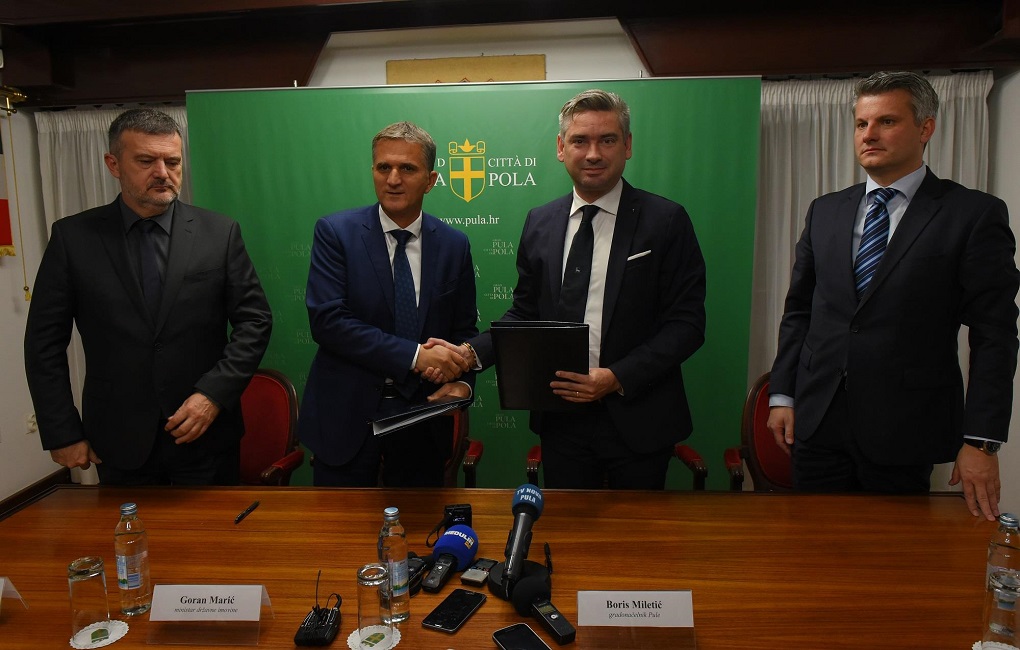 Potpisivanju su nazočili i državni tajnik u Ministarstvu državne imovine Tomislav Boban i pročelnik Ureda Grada Pule Aleksandar Matić.