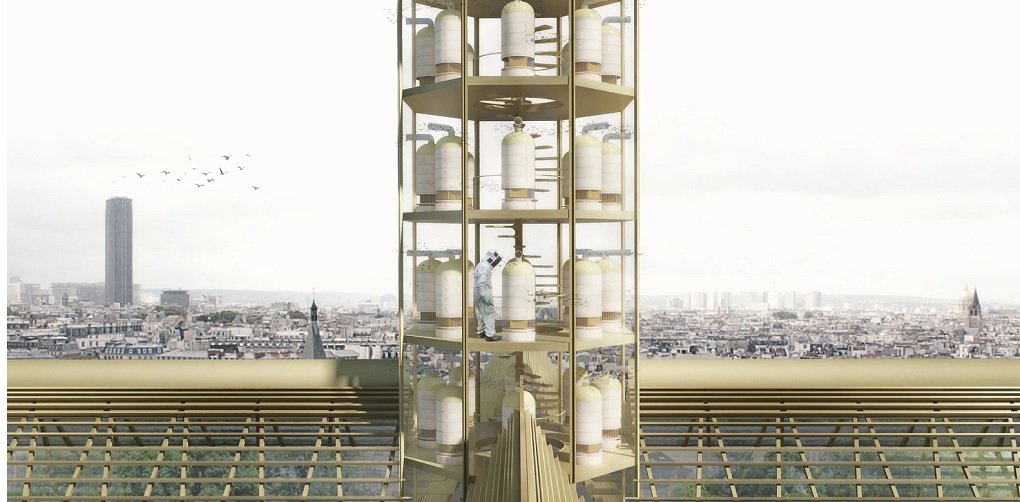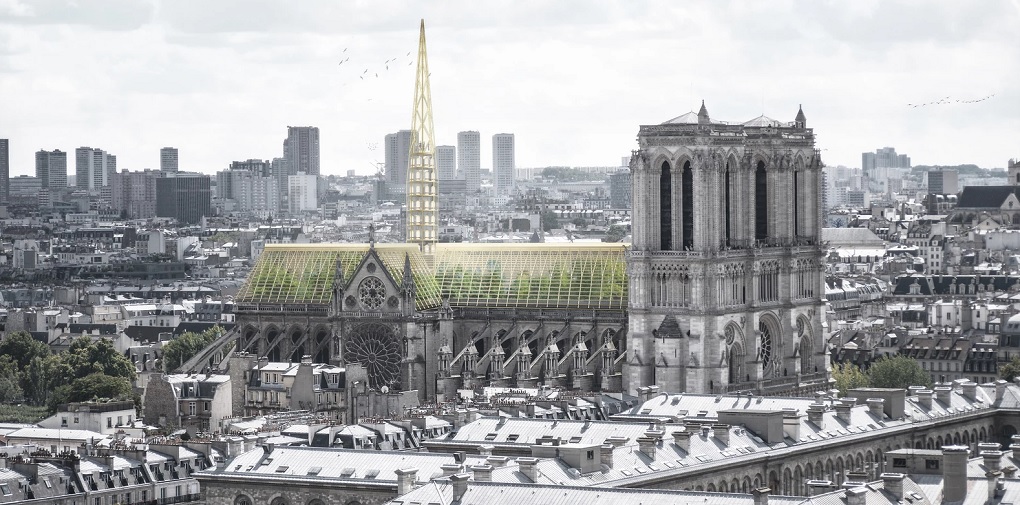 Dizajneri pariškog arhitektonsko-dizajnerskog studija NAB svojim prijedlogom obnove katedrale Notre-Dame nude izgradnju edukativnog staklenika na mjestu požarom uništenog drvenog krovišta iznad kojeg bi se uzdizao i novi toranj (flèche), no ovaj put rezerviran za pčele.