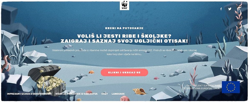 Uz pomoć WWF-ovog morskog kalkulatora vrlo je lako provjeriti posljedice naših izbora. U samo nekoliko klikova moguće je izabrati vrstu, ribolovni alat i način transporta te saznati kakav će se ugljični otisak naći na tanjuru. Primjerice, jeste li znali da su kozice iz necertificiranog uzgoja koje se potom prevoze avionom prava katastrofa za klimu? A što je s omiljenim bakalarom koji će se ovih dana naći na gotovo svačijem stolu?