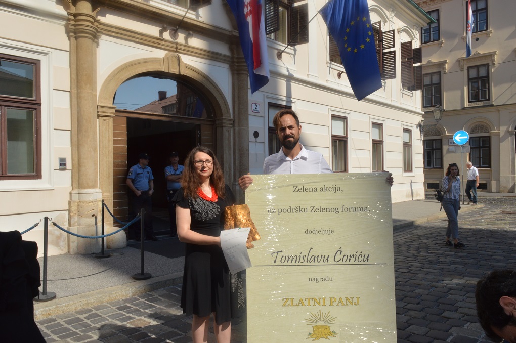 - Udruge Zelena akcija i BIOM su 30. lipnja 2020. ispred zgrade Ministarstva zaštite okoliša i energetike upozorile na višestruku štetu u slučaju VE Krš-Pađene koja je posljedica Ćorićevih političkih odluka. / Foto: Luka Tomac / Zelena akcija