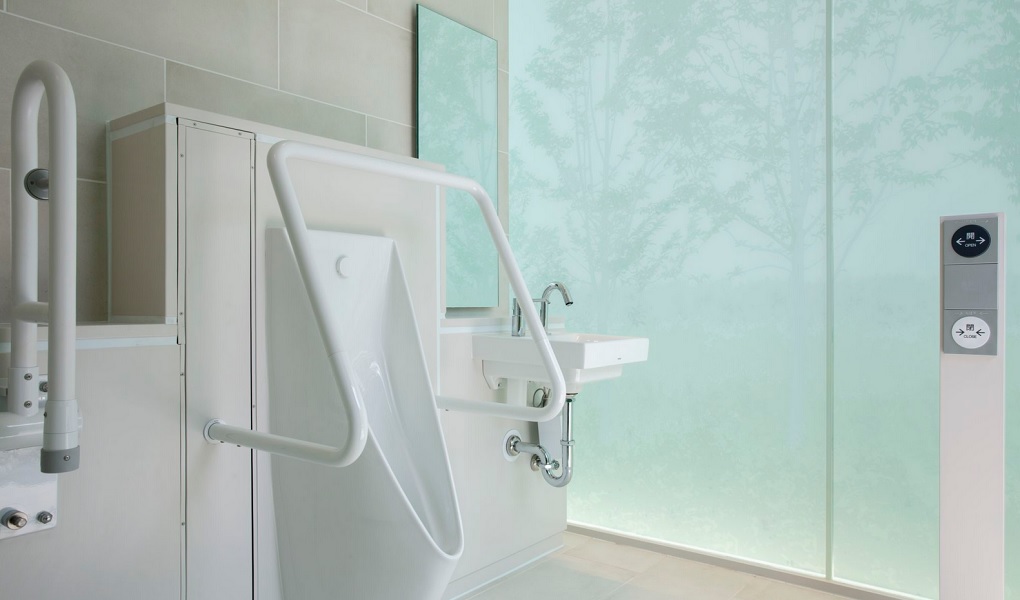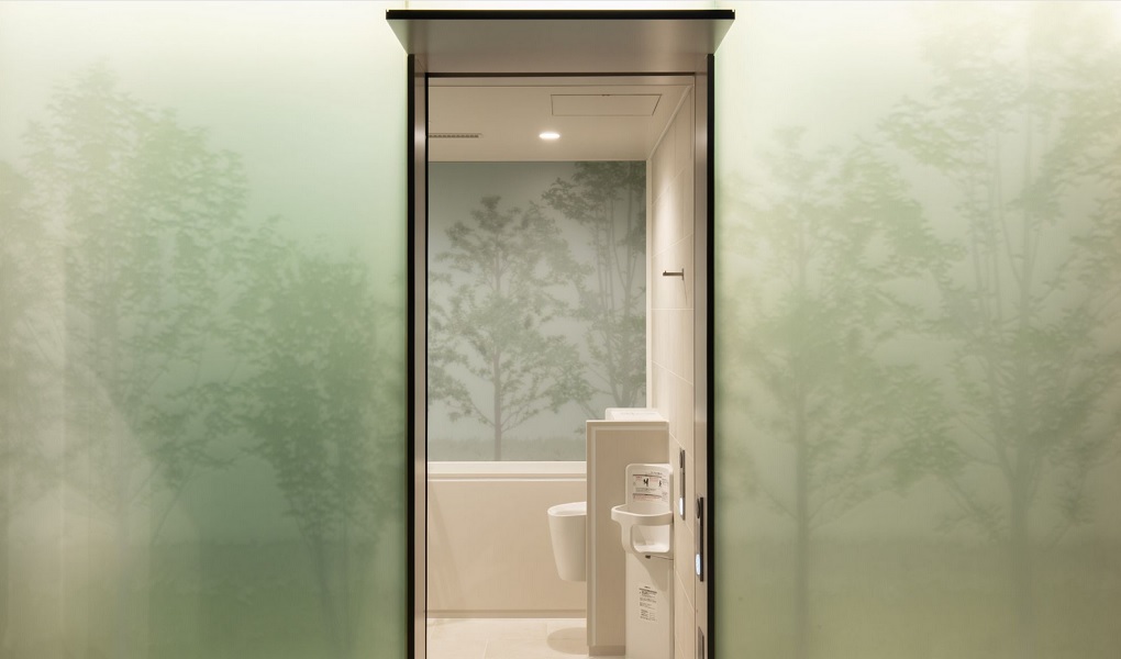 Print drveća na matiranom staklu uočava se tek iz blizine ili iz unutrašnjosti kabina novog tokijskog javnog zahoda