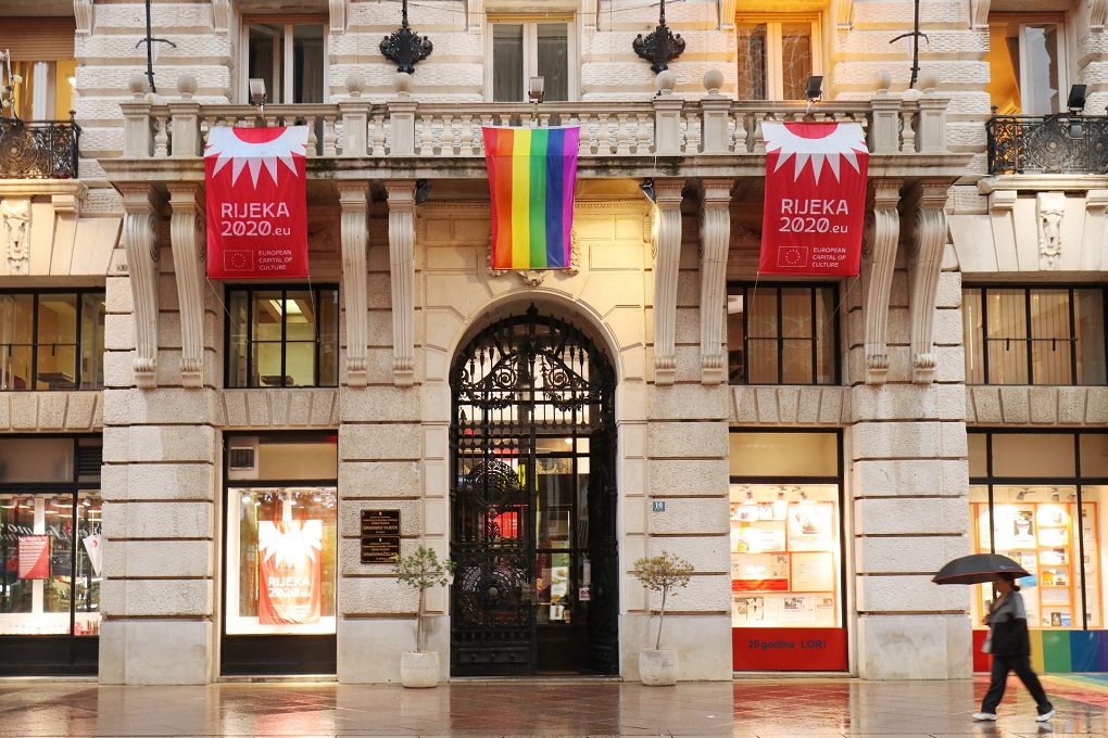 Na zgradi Grada Rijeke istaknuta zastava duginih boja