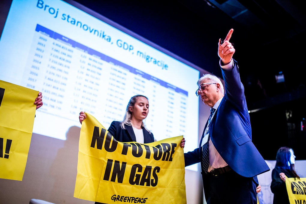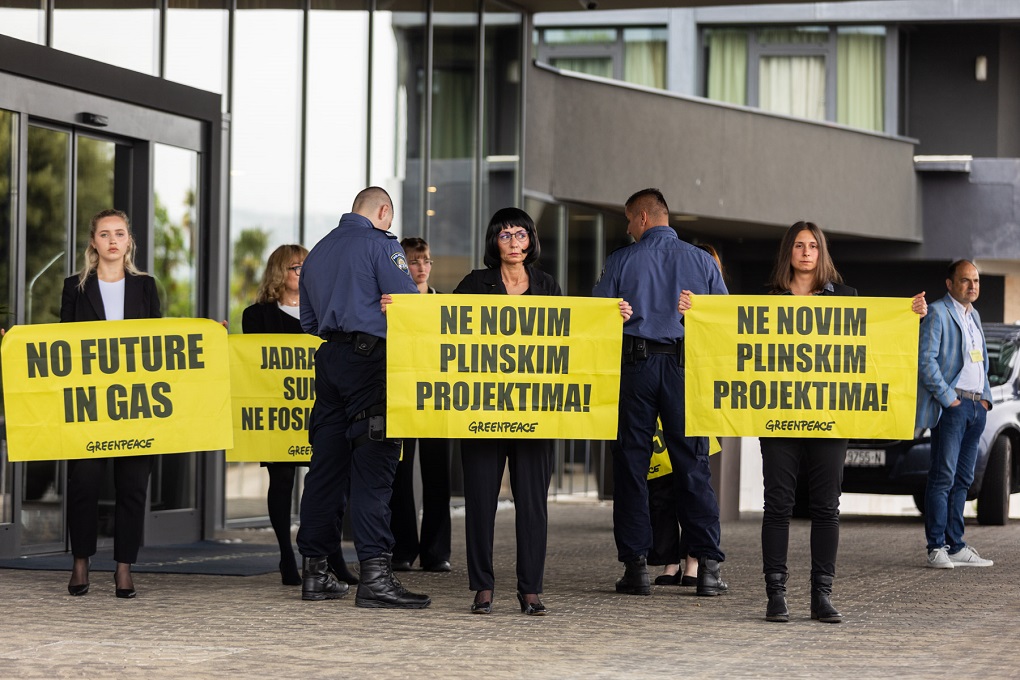 Aktivisti i aktivistkinje Greenpeacea iz osam zemalja prekinuli su jutros 38. Međunarodni znanstveno-stručni susret stručnjaka za plin, na kojem sudjeluje i ministar Davor Filipović. „Plinski profit ubija klimu“, „Ne novim plinskim projektima“ i „Jadransko sunce, ne fosilni plin“, neke su od poruka koje su istaknuli aktivisti, prosvjedujući protiv najava i planova za nova ulaganja u plinske projekte i infrastrukturu.