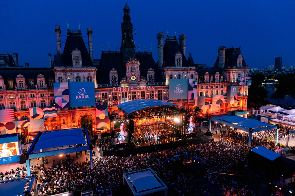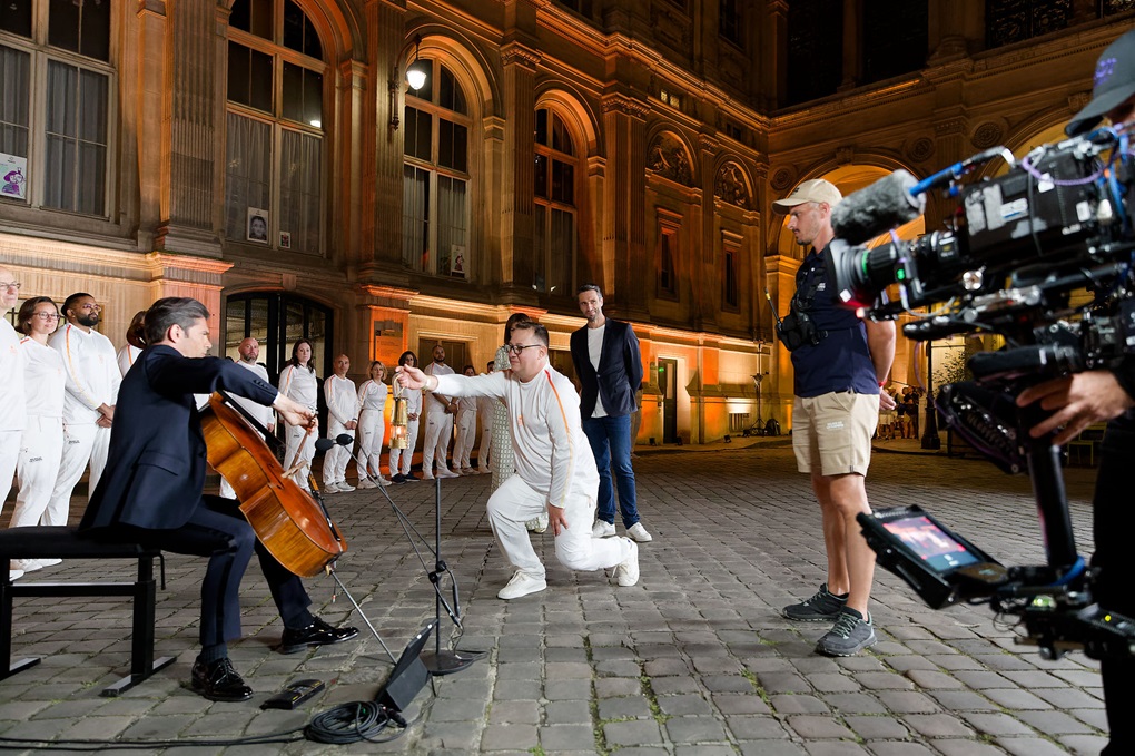 - Olimpijski „lampion“ unutarnjim dvorištem pariške Gradske vijećnice nosio je Ludovic Franceschet, u pratnji gradonačelnice Pariza Anne Hidalgo i predsjednika Organizacijskog odbora Igara u Parizu 2024. Tonyja Estangueta te uz melodije „Bella Ciao“ i „Himna ljubavi“ u izvođenju poznatog francuskog violončelista Gautiera Capuçona © Henri Garat | Ville de Paris