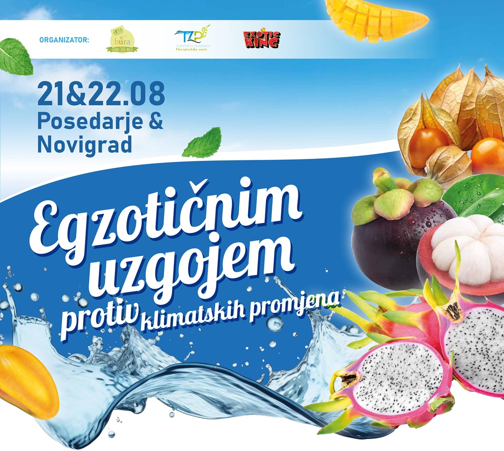 Na sajmu će biti predstavljeni domaći autohtoni proizvodi te ekološko egzotično voće uzgojeno u Hrvatskoj. Pokrovitelji sajma su Europska unija, Zadarska županija te općine Novigrad, Posedarje i Poličnik. Ne propustite priliku da degustirate, naučite i podržite održive načine uzgoja koji mogu pomoći u borbi protiv klimatskih promjena.