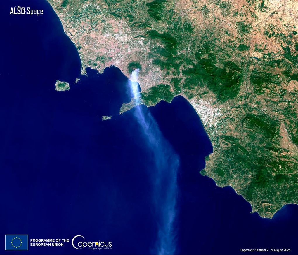 - Veliki požar na jugoistočnim padinama Vezuva bio je vidljiv iz svemira. U trenutku nastanka snimke europskog satelita Sentinel-2, vatra je već uništila područje površine od najmanje 4 km², a dimni oblak pružao se duž stotinjak kilometara preko Tirenskog mora. © Copernicus EU | Sentinel-2