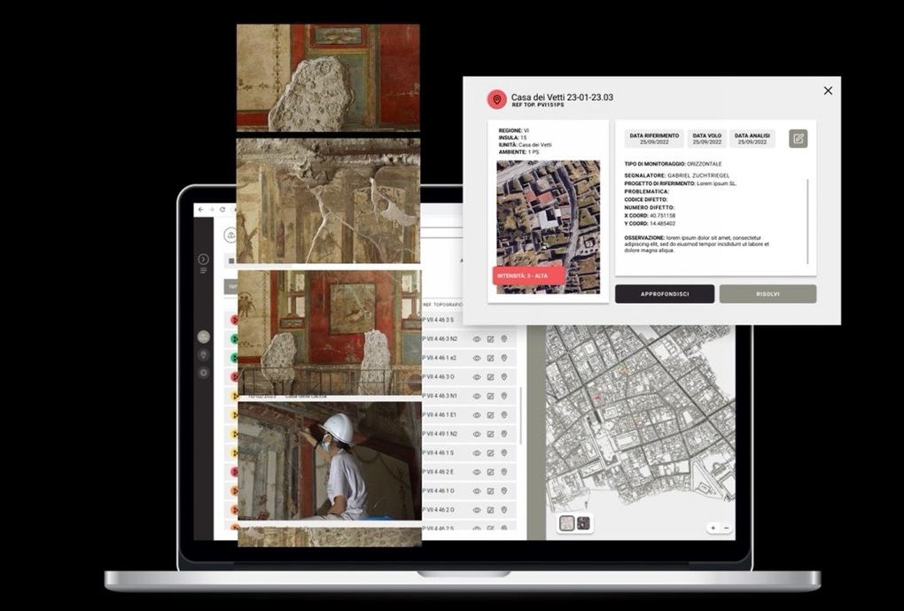 Korištenjem web aplikacije uvedeno je inovativno rješenje za kontinuirano praćenje koje je Arheološki park Pompeji razvio kako bi osigurao očuvanje više od 13 000 prostora, koji pripadaju približno 1200 „katastarskih jedinica“ s kućama i radionicama izgrađenima prije dvije tisuće godina.