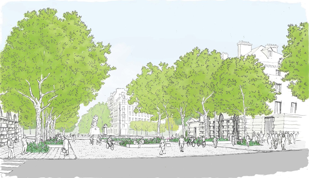 - Ilustracija projekta preuređenja trga Place Denfert-Rochereau (14. arondisman) © Bureau des paysages | Alexandre Chemetoff